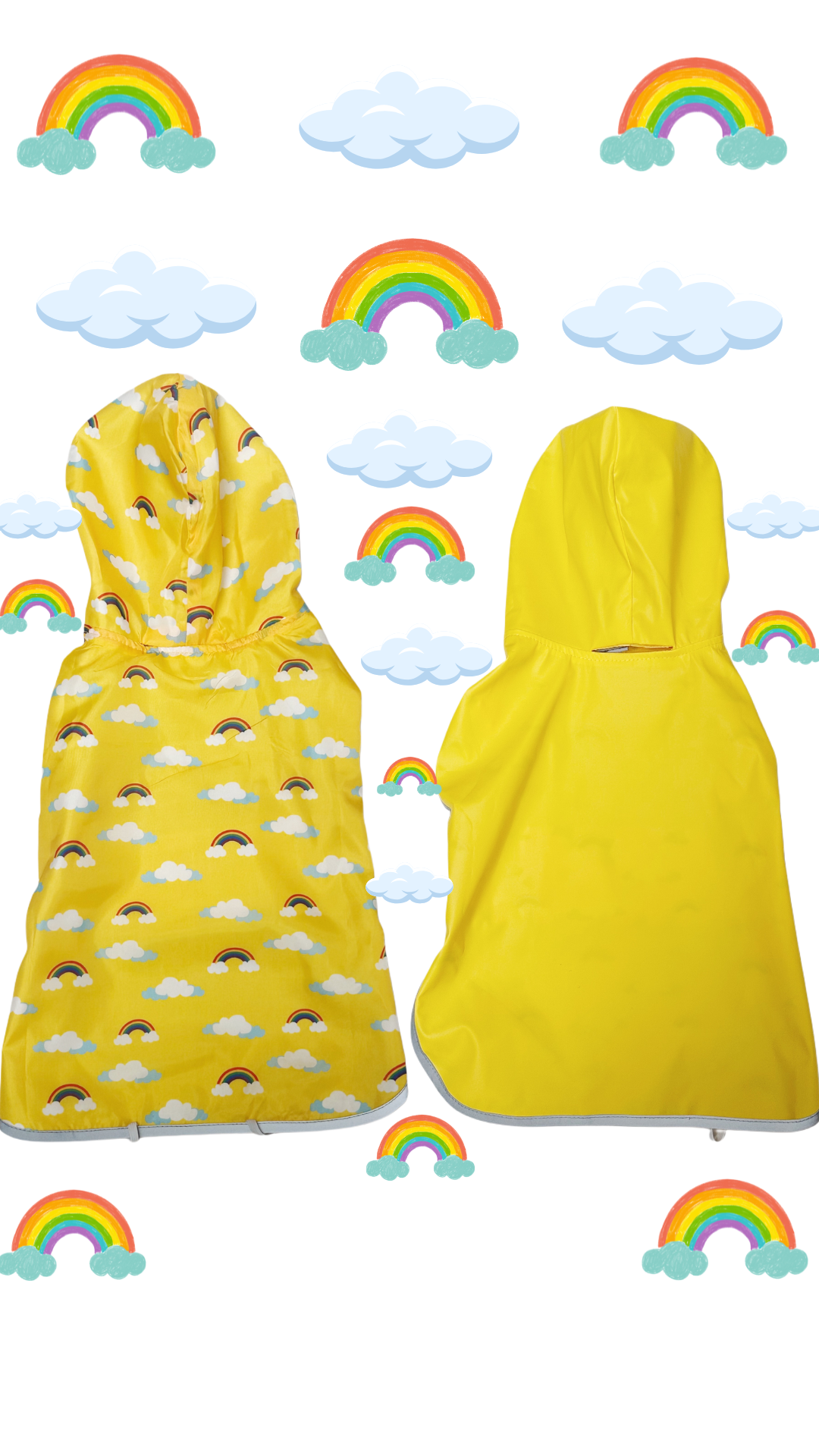 ¡El accesorio perfecto para los días lluviosos! Mantén a tu perrito seco y con estilo con nuestra ligera y resistente capa impermeable reversible. Diseñada con una capucha integrada y un práctico cierre de velcro, es fácil de poner y quitar, brindando comodidad y protección en cada paseo.